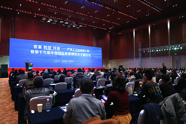 2019年国家出台了一系列政策法规推进健康中国建设和实施。普及健康生活、加强健康教育是保健品行业助力健康建设重中之重。中国健康产业发展进入规范中发展的良性发展轨道,为进一步配合国家相关部门对保健食品行业的市场监管,引导行业规范发展、行业营销渠道顺利升级转型,解读行业关心的政策动态。为此,12月3日下午,由中国保健协会、国药励展主办的变革和转型升级----严管之下的创新之路暨第19届中国国际保健博览会主题论坛在重庆悦来国际会议中心召开。 本次论坛邀请了相关行政部门负责人、行业协会、知名企业家共同探讨行业关注的保健食品、特殊医学用途配方食品、养老产业的发展前景、市场经营等板块的现状及发展方向,就相关政策、市场监管与转型、资本运作、品牌建设等方面进行对话交流,共同探讨行业变革带来的市场发展新机遇。为行业发展、企业经营和市场创新提供指导和参考。 会议由中国保健协会副理事长王中主持。  中国保健协会理事长秦小明讲话