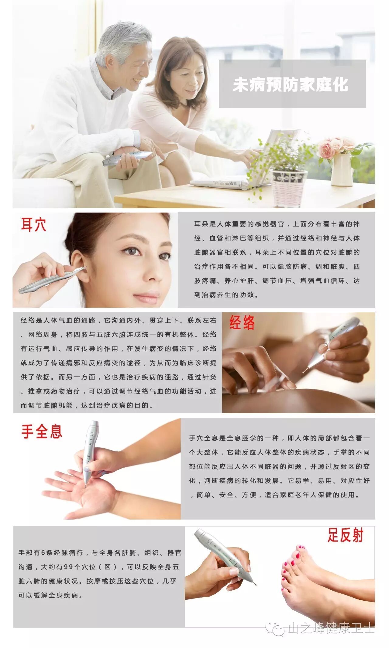 2、使用范围广。能满足中医师、理疗按摩师、针灸、耳穴专业医务人员和从事美容、养生、保健以及家庭个人等非专业人员的使用。